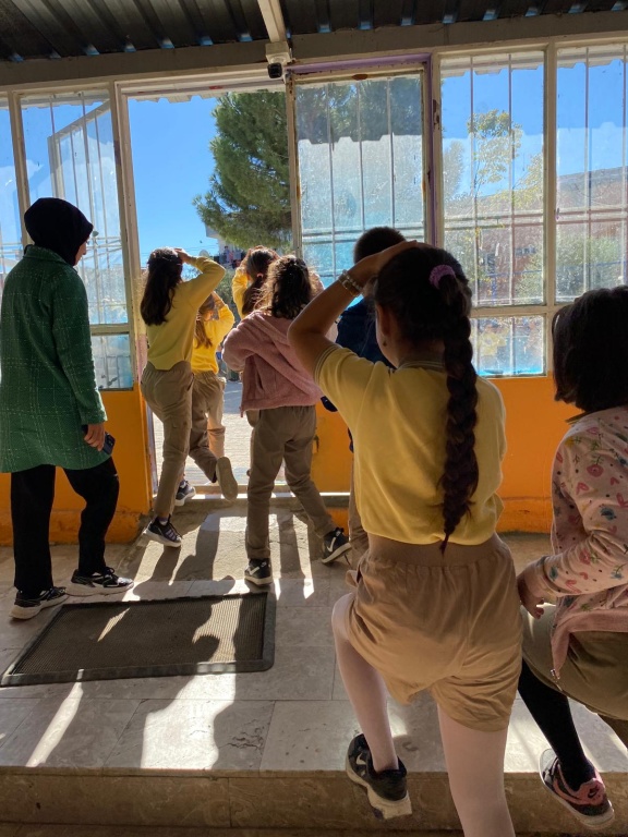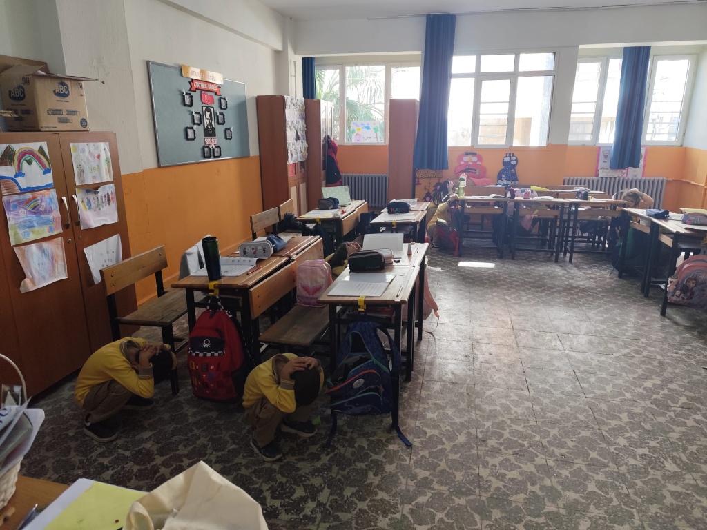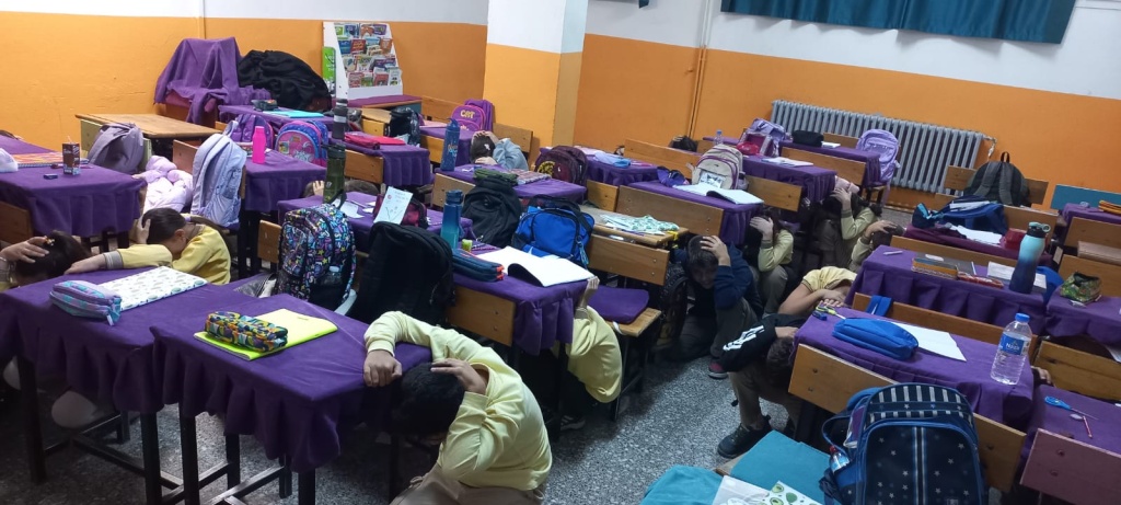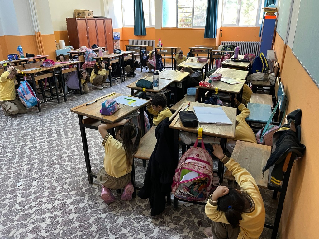 Tatbikat sırasında “Çök – Kapan – Tutun” hareketi, güvenli tahliye yolları ve toplanma alanında düzenli bir şekilde toplanma konularında pratik yapıldı. Bu etkinlikle öğrencilerimizin afet bilincini geliştirmeyi ve acil durumlarda doğru adımları atmaları konusunda farkındalık kazandırmayı amaçladık.